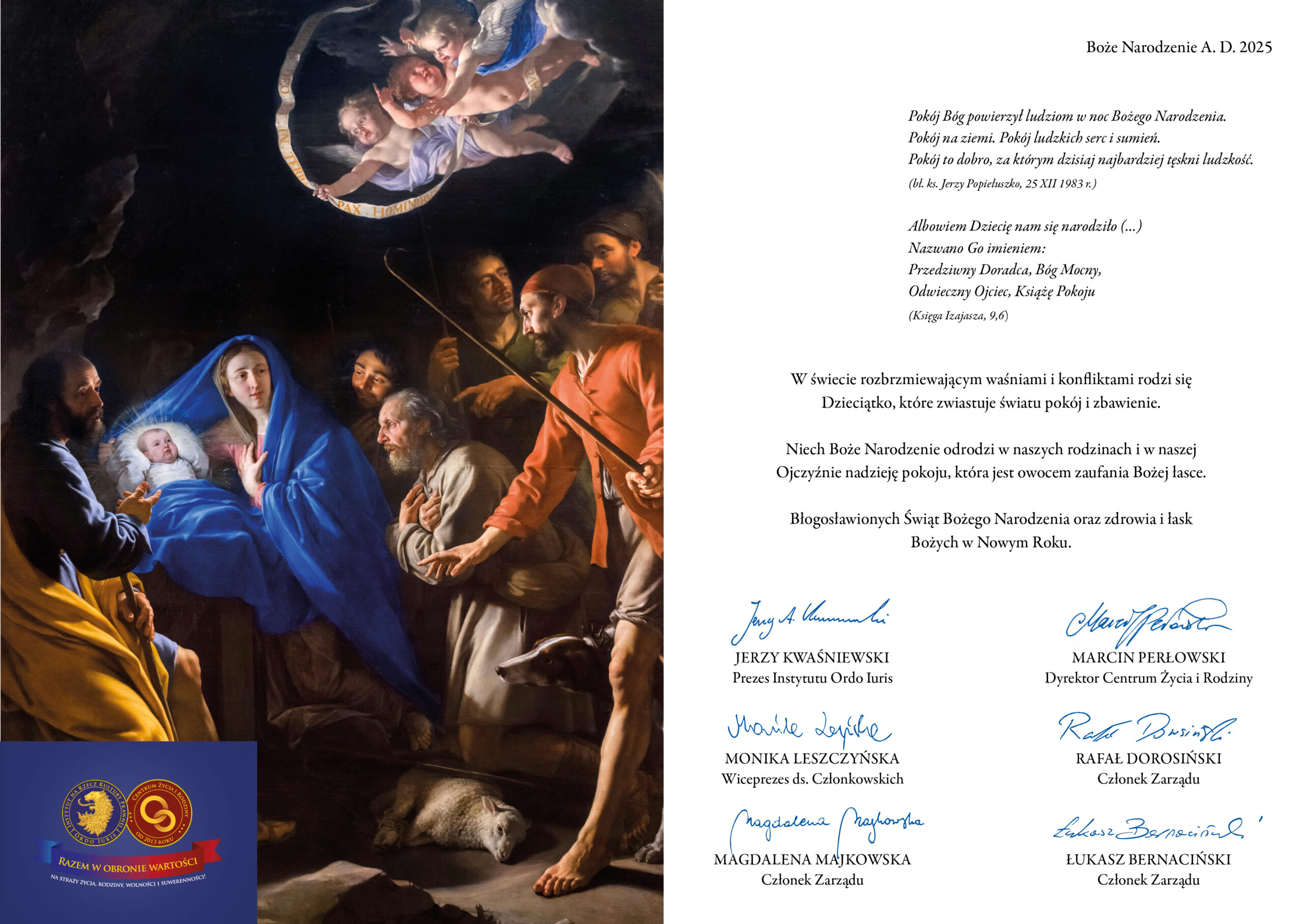 Niech prawda Bożego Narodzenia odrodzi w nas samych, w naszych rodzinach i w naszej Ojczyźnie nadzieję pokoju, która jest owocem zaufania Bożej łasce.