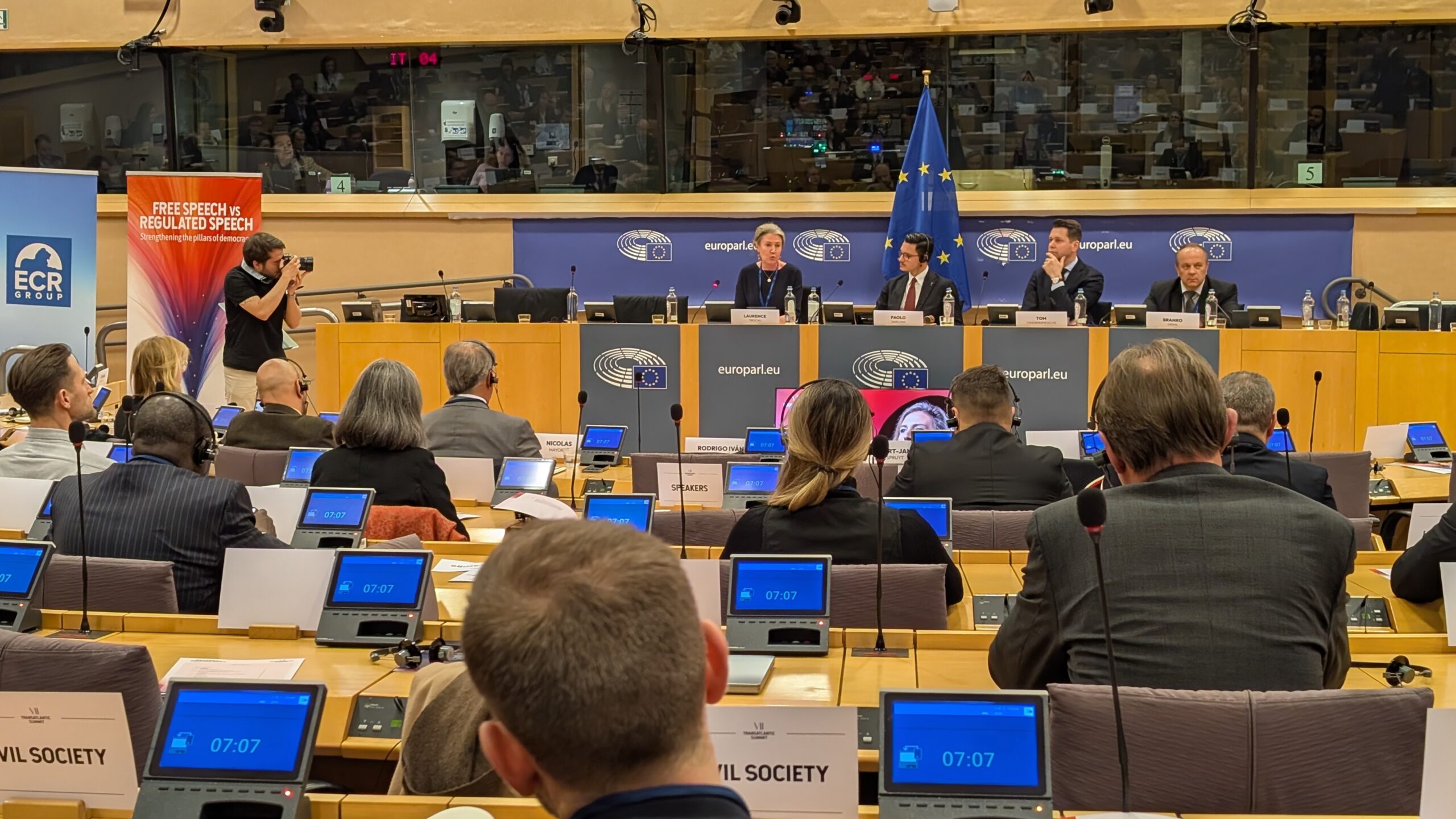 Spotkanie poświęcone było narastającym ograniczeniom wolności słowa w krajach zachodnich oraz konsekwencjom regulacji cyfrowych dla debaty publicznej i demokracji.